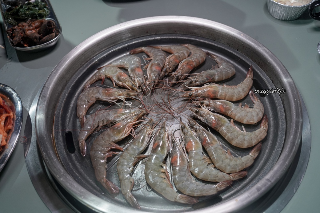 海鮮是桌邊服務的!金喬伊個人韓式燒肉吃到飽有服務人員直接推餐車過來!直接一次給好多蝦!我的天啊!不怕你吃的店家是一定要給一個讚的!