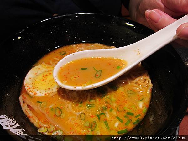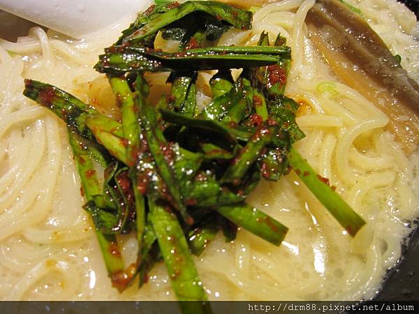 加進我的蒜味白湯中,還好,不會很辣,所以不會把拉麵的湯頭味道蓋過去。