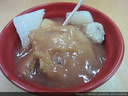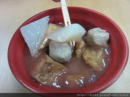 貢丸,其還有豬血糕,因為瑪姬不吃,所以老闆換了甜不辣給我。