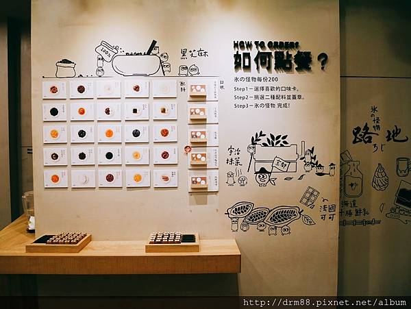 牆壁上有排列了五種口味,25種配料,