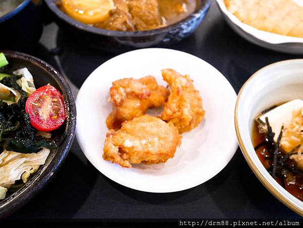 這也很豐盛,有墨魚明太子+炸雞+豆腐+菜+味增湯+西瓜