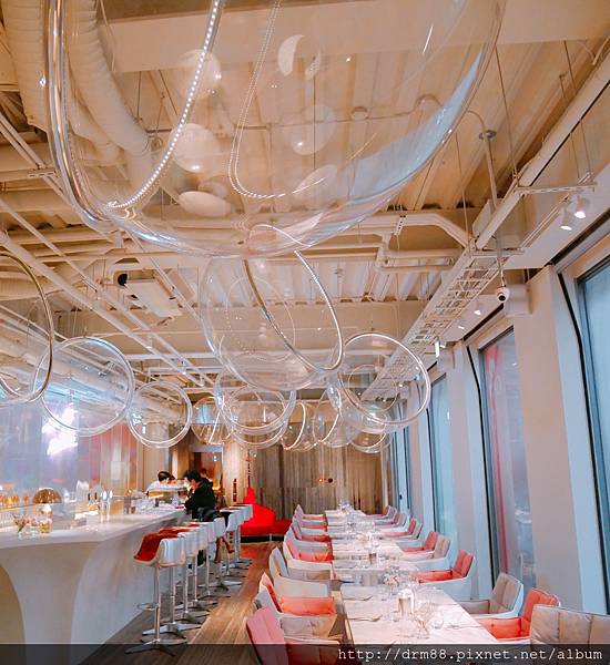 這裡是以泡泡和點點設計的,所以餐廳天花板掛了許多透明泡泡,非常可愛而且很特別!