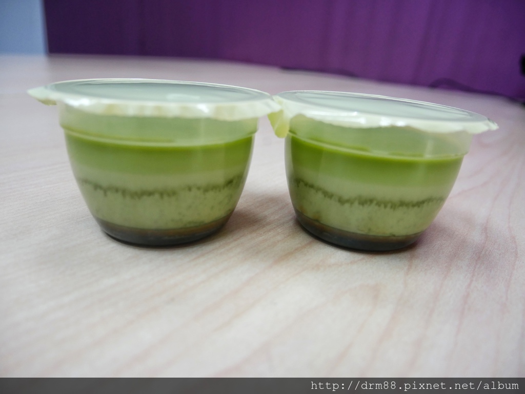 這張照片很清楚,抹茶是布丁體,底下有黑糖蜜,