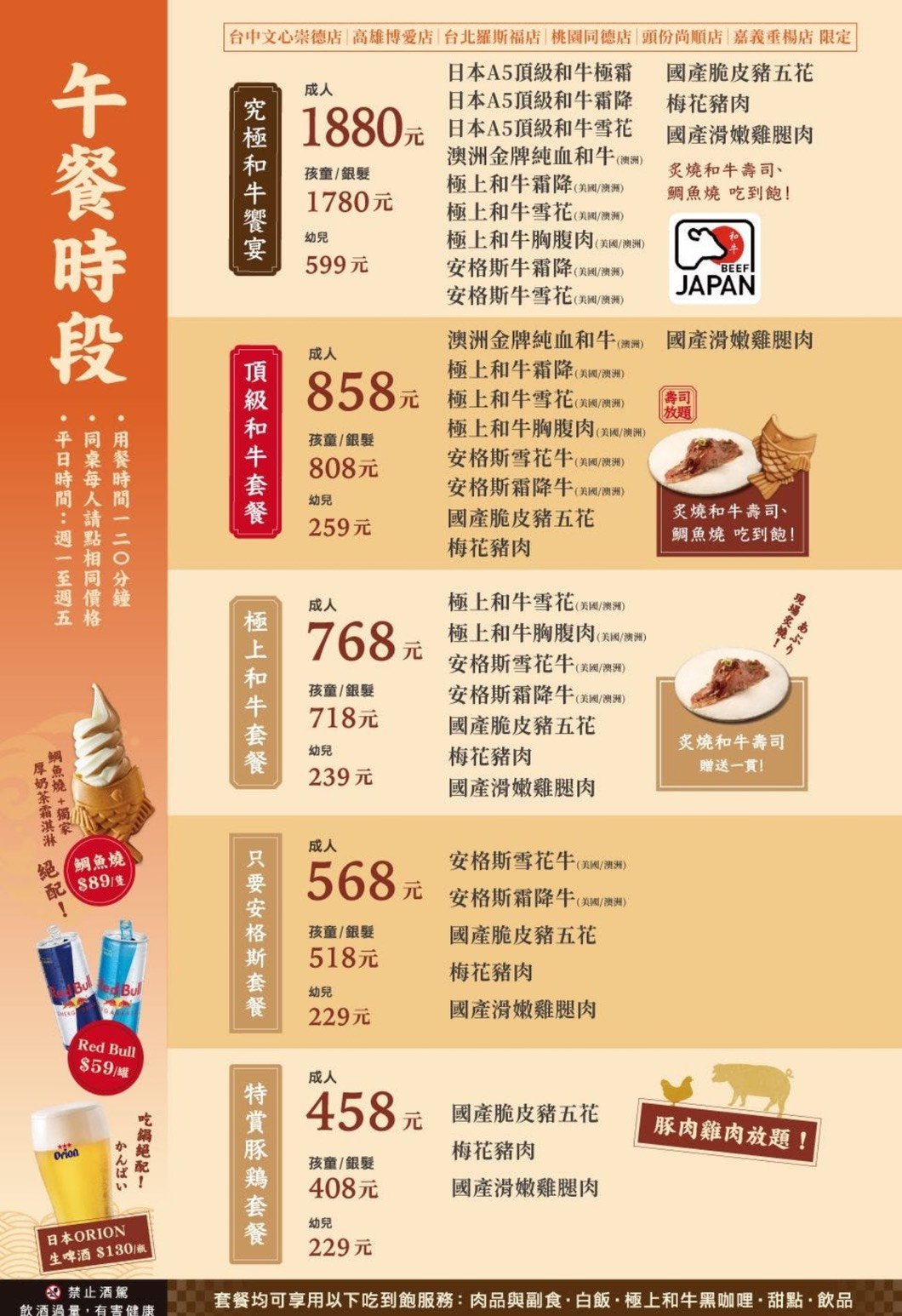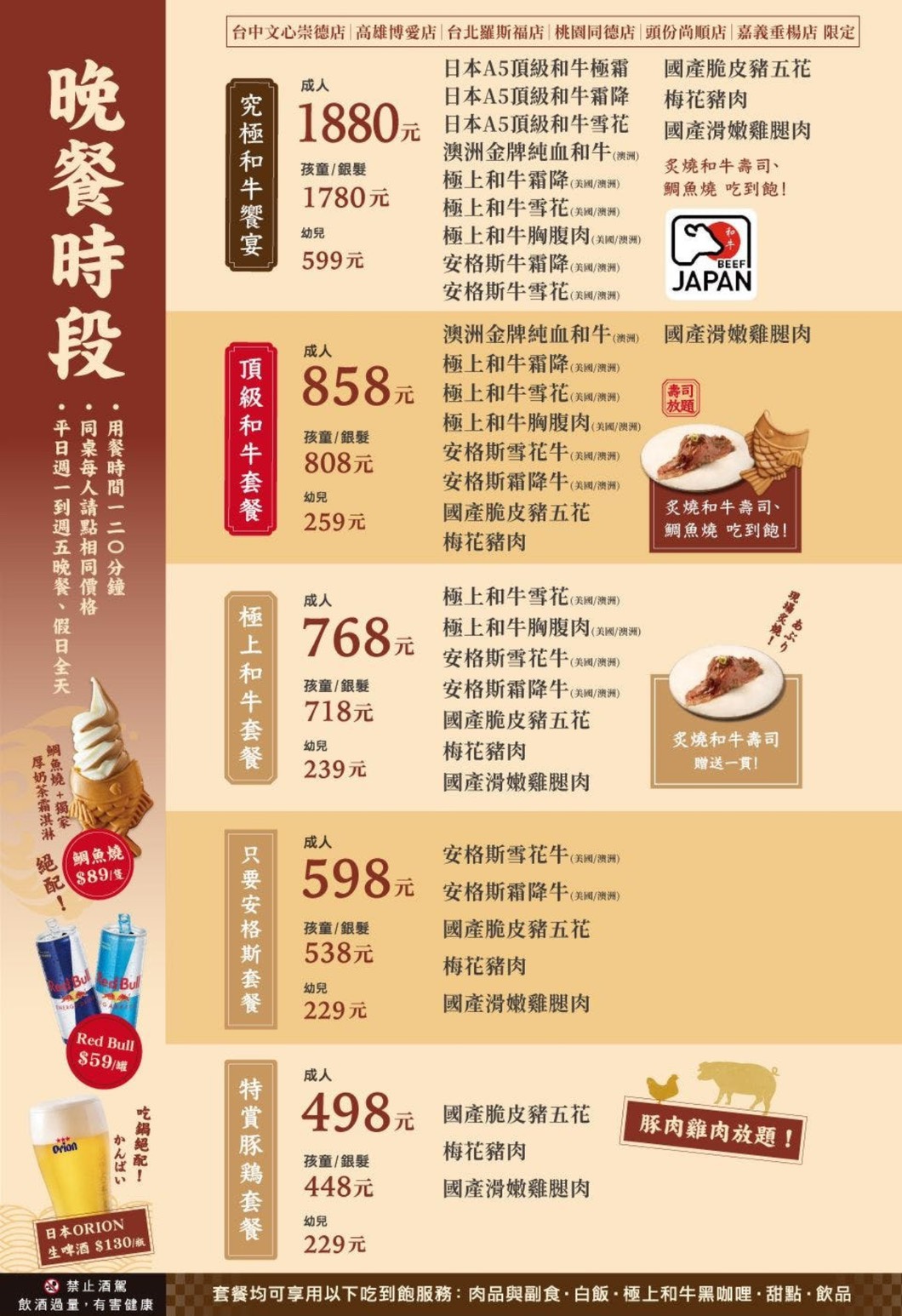 這個是在他們訂位網路的菜待我來的這家沒有1880最高就是858好可惜,不然1880吃5小時真的很值!